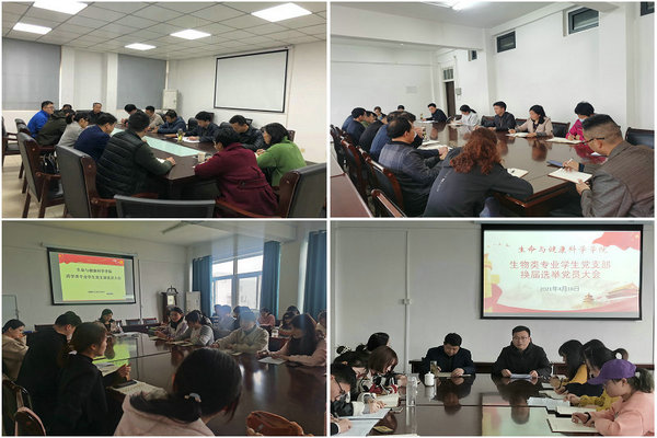 为健全和完善党的基层组织设置,提高基层党组织建设质量,4月18日下午和4月21日下午,生命与健康科学学院四个党支部分别召开了换届选举党员大会,顺利完成党支部换届选举相关任务。学院党委书记詹学文,副书记彭丽萍,党委委员孙玉军、刘汉珍分别到党支部指导换届工作,换届会议由各党支部书记主持。